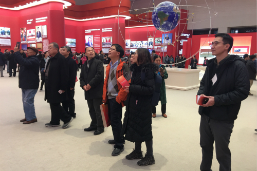 展览一共设置了6个主题内容展区,每个展区都特色鲜明,精彩纷呈。参观过程中,大家在各个展区驻足认真观看,通过历史图片、文字视频、实物场景、沙盘模拟、互动体验等多种手段和元素,身临其境地看到了这40年来人民生活的日益美好,同时也更加深刻地体会到了改革开放以来特别是十八大以来,中华民族迎来了从站起来、富起来到强起来的伟大飞跃。