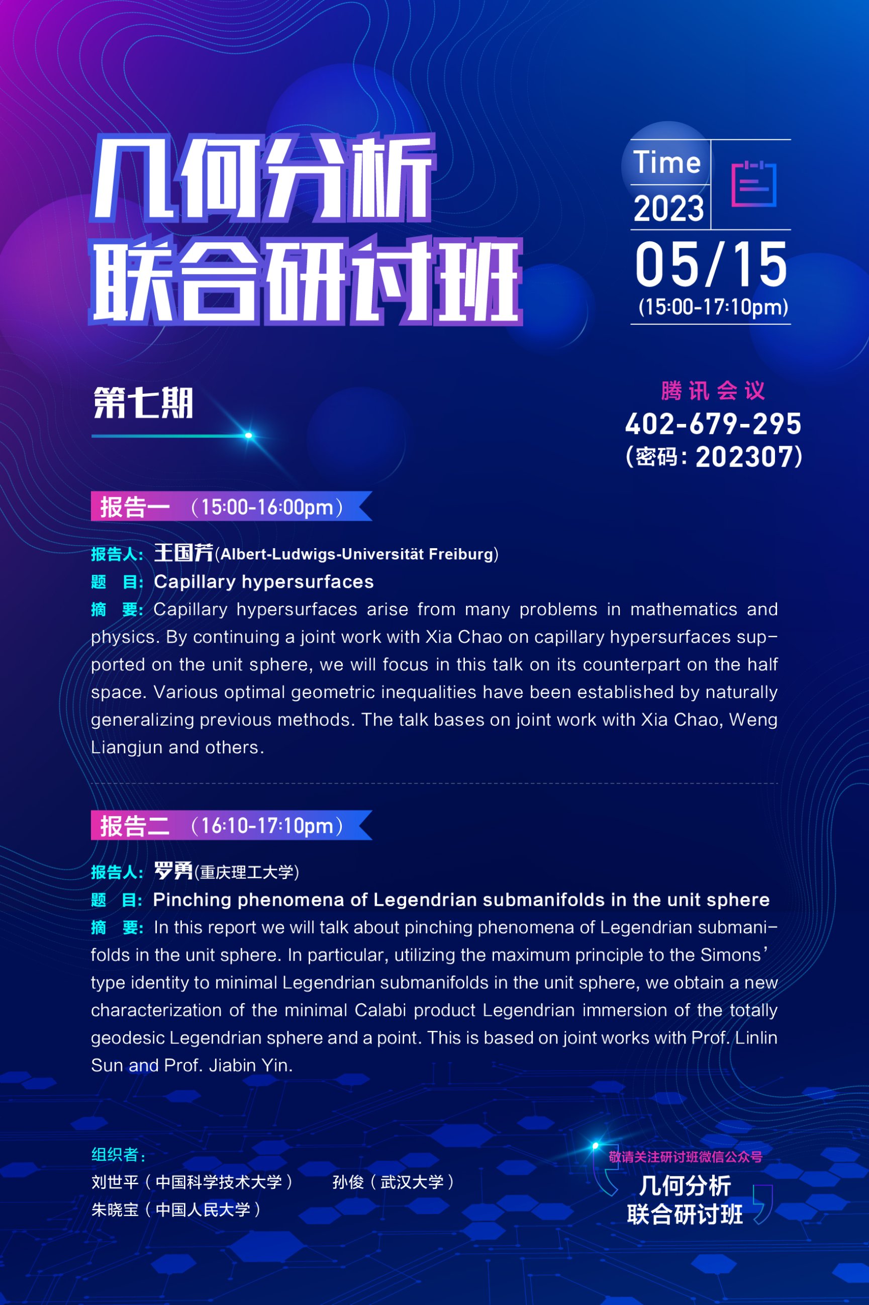 活动预告|几何分析联合研讨班