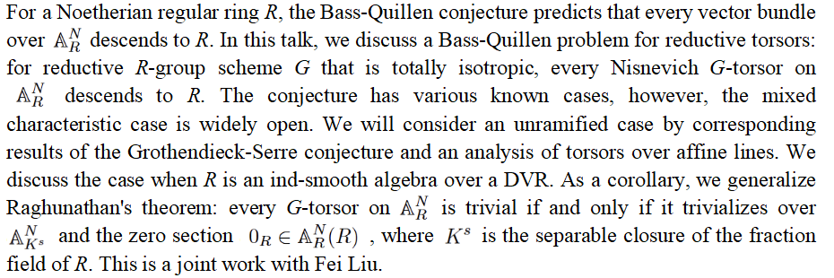 报告人简介:哈尔滨工业大学数学研究院副教授,博后工作于俄罗斯圣彼得堡Steklov研究所,巴黎萨克雷大学博士,研究方向是代数几何,尤其是群主丛在算术几何中的应用。