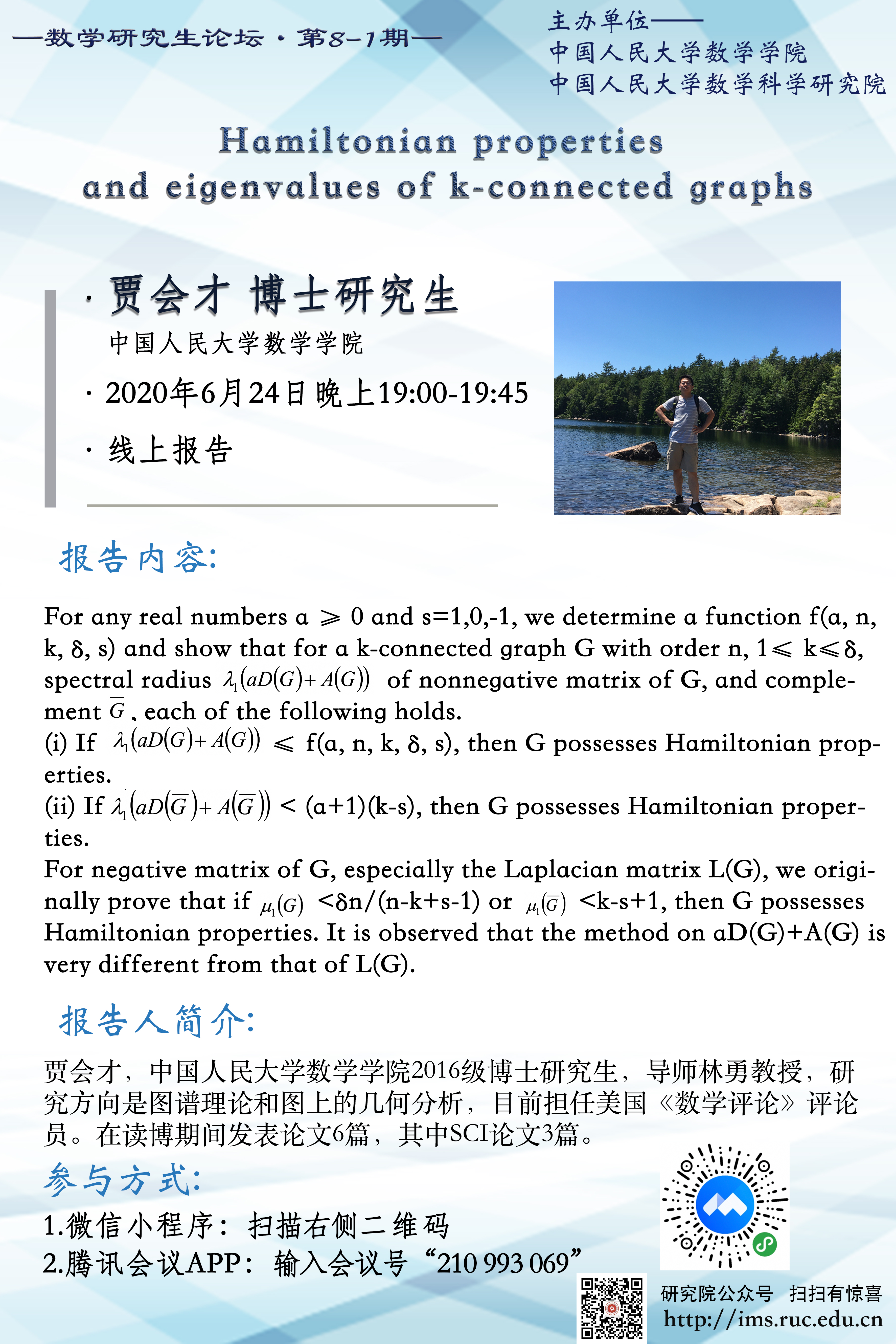 yl7703永利研究生论坛 8-1期 —Hamiltonian properties and eigenvalues of k-connected graphs
