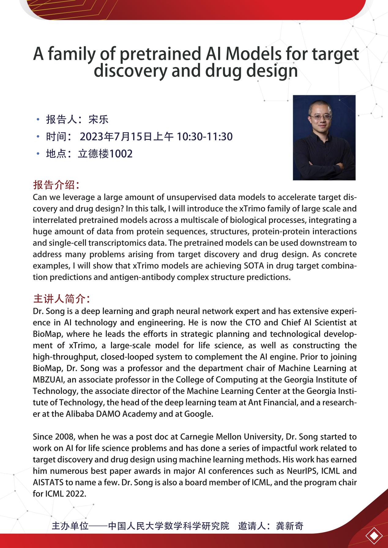 学术报告 | 宋乐:预训练大模型助力药物设计