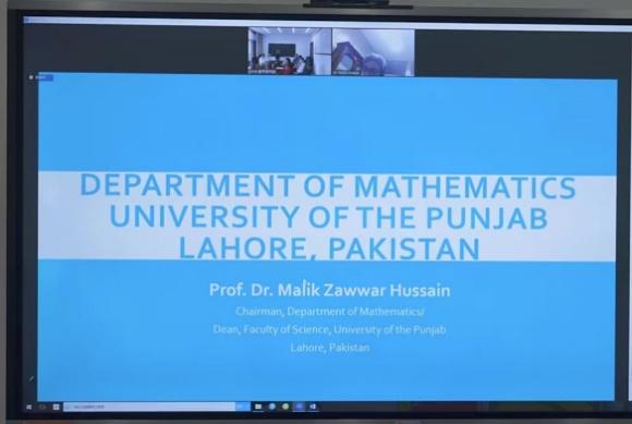 5月10日下午,yl7703永利数学学院通过视频连线方式,与巴基斯坦旁遮普大学数学系举行合作会议。巴基斯坦旁遮普大学数学系主任Malik Zawwar Hussain教授出席会议,会议由公司副经理姜昊主持。参加会议人员包括yl7703永利信息与计算科学系系主任龚新奇教授、数学与应用数学系副主任黄文林副教授、金融数学系系主任张良泉副教授等。