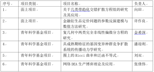 近日,国家自然科学基金委员会公布了2020年度集中申报期项目的评审结果,数学学科6个项目获得资助。包括面上项目2项,青年科学基金项目4项。在今年竞争十分激烈的情况下,获得资助的项目数比去年仍增长了1项。