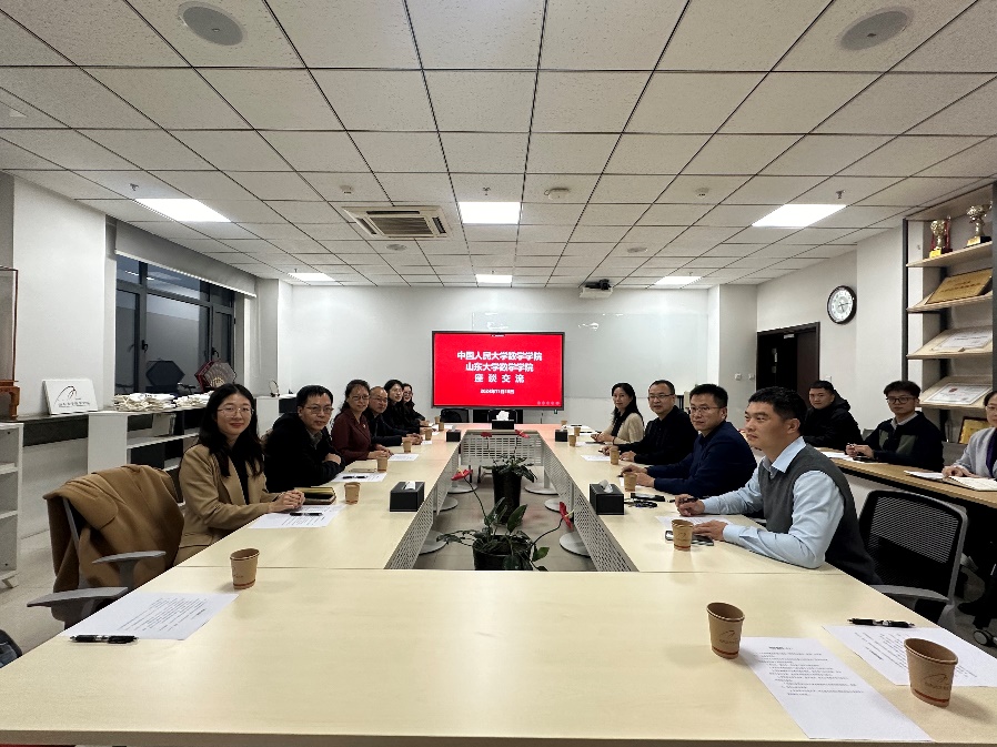 会上,双方围绕团队建设、人才培养、教学科研工作等方面进行了研讨交流,两院就深化合作达成共识,希望彼此能够保持沟通交流,互鉴经验、互学所长,共同推动数学学科的发展。随后,公司一行参观了山东大公司史馆、博物馆。