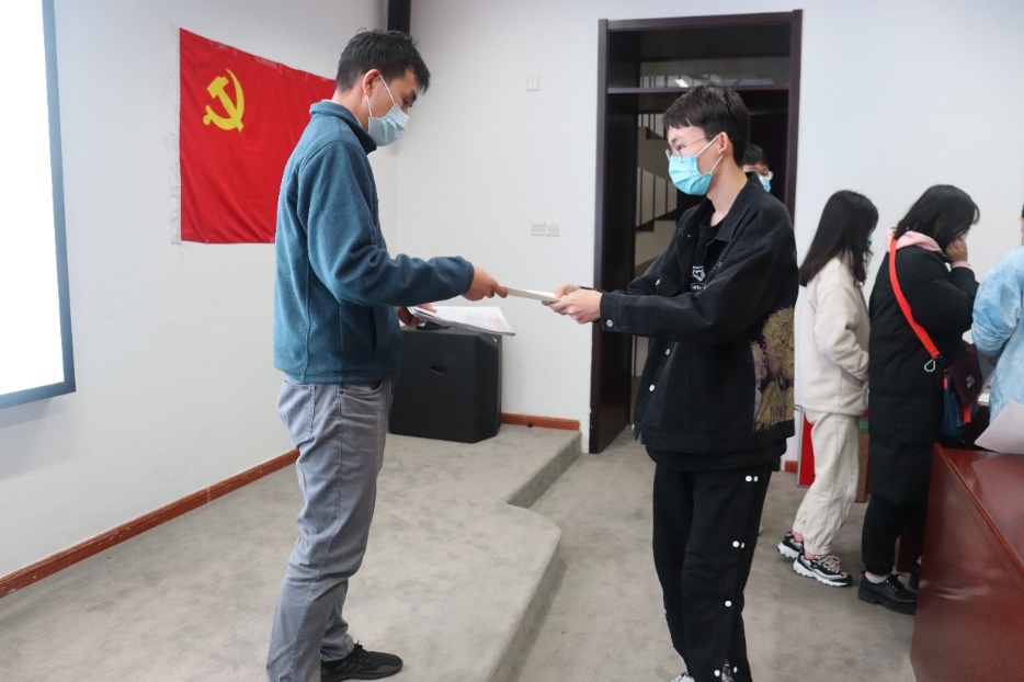 仪式伊始,公司员工党建促进会主席团张经纬向学员们介绍了党课学习小组的学习目标和方案,并强调了党课学习小组的重要性和严肃性。随后,同学们依次向党委书记和副书记递交了入党申请书。