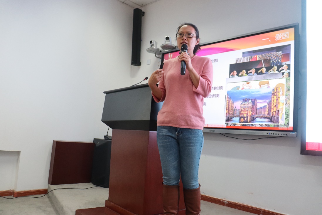 随后,公司党委书记柯媛元为大家讲授题为“爱国·爱家·爱自己”的入党第一课。柯老师首先通过带领大家回忆那些令人爱国情绪高涨的时刻,并列举陆游、岳飞、方志敏、黄大年等人的事迹引导同学们要将爱国落实成自觉与责任,转化为情怀与力量。柯老师还从学习、生活、工作三个方面对学员们提出了期望,希望大家爱长辈、爱师友、爱岗位,珍惜自己的生命、健康、声誉和才华。最后,柯老师援引习近平总书记的讲话内容,鼓励大家要牢记并践行习总书记在理想、青春、学习、创新、实干等方面对青年学子的谆谆教诲。