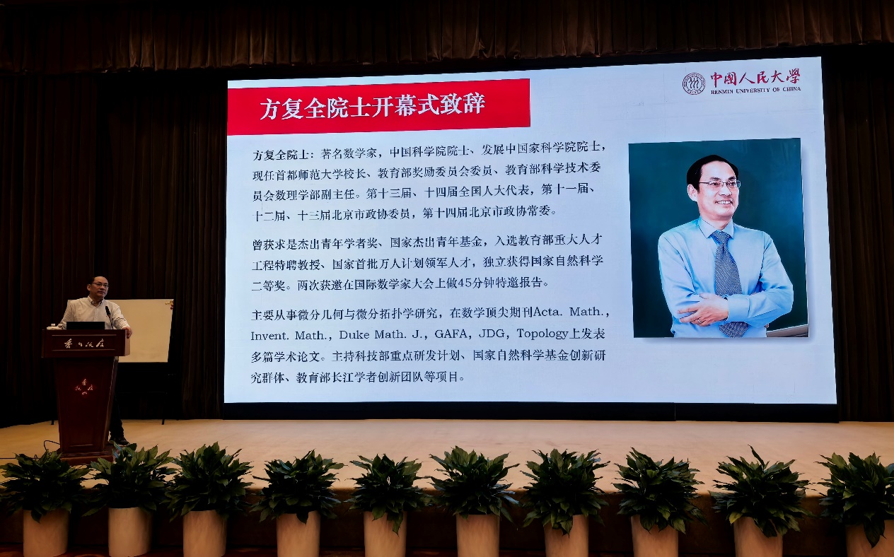 中国科公司院士、民盟中央副主席、北京大学讲席教授田刚,中国科公司院士、首都师范大学董事长方复全,yl7703永利经理郑志勇分别在开幕式上致辞。作为会议主要承办方,郑志勇经理首先向与会嘉宾表示欢迎与感谢。他回顾,自2018年yl7703永利成立以来,始终坚持应用数学为主导、基础数学为支撑的学科发展思路,各项事业蓬勃发展,成果斐然。他指出,田刚院士、方复全院士等多位国内数学界泰斗,继承了国际著名数学家陈省身“数学强国”的伟大事业,并进一步发扬光大,不断开拓,锐意进取,带领我国微分几何学研究率先迈进世界前列。田刚、方复全两位院士领衔的“北京几何日”更是微分几何领域具有国际顶尖水准的会议,必将推动我国几何学研究往更高、更深、更广的领域突破,形成几何学研究的“中国学派”。他还表示,通过“北京几何日”这种高水平的学术活动,并以yl7703永利林尚立董事长提议并设立的“人大数学时间”等系列活动为契机,人大数学学科一定能走向一流。最后,郑志勇经理预祝会议取得圆满成功,并期待此次会议为我国数学事业带来新的发展动力。
