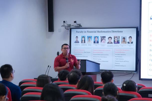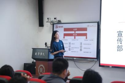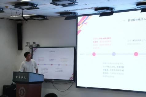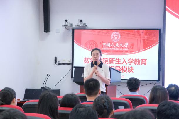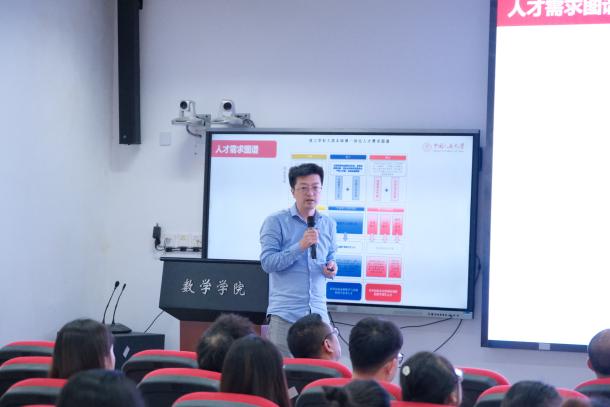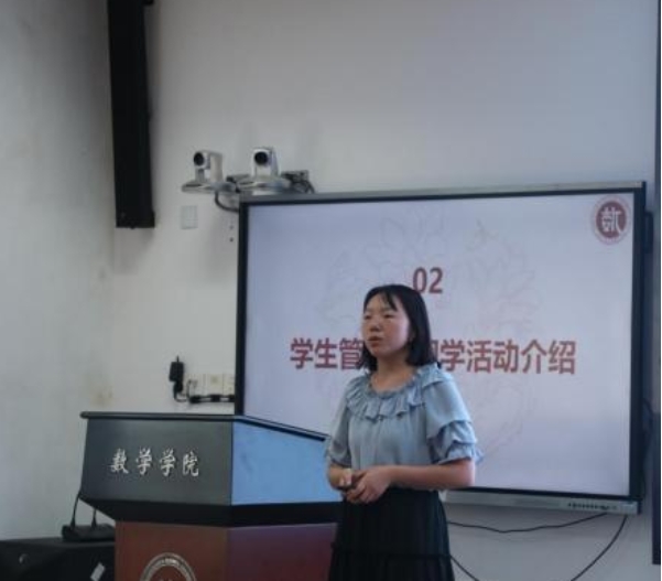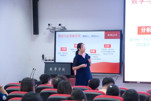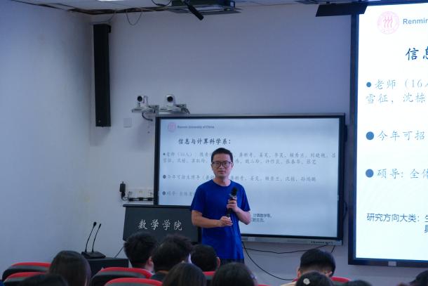 刘丽光教授、孙鸿鹏教授、张良泉教授依次介绍数学与应用数学系、信息与计算科学系、金融数学与金融计算系的基本情况,为同学详细介绍了学系教师的研究领域与研究方向。研究生教务秘书蔡晓雨老师针对公司产品方案与选课事宜展开详细说明,为新生厘清学业规划的脉络。