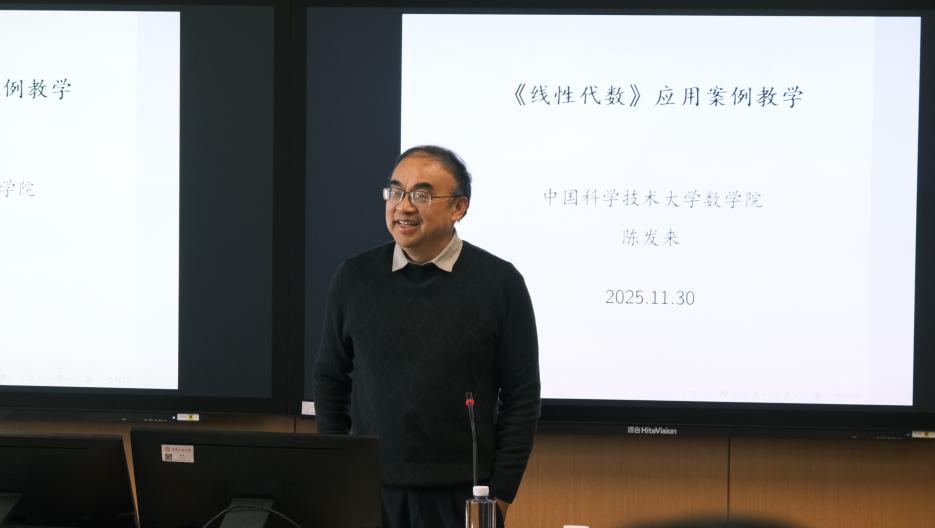 2025年11月30日上午,中国科学技术大学数公司教授、博士生导师陈发来应yl7703永利邀请,在中关村校区立德楼303教室作“线性代数应用案例教学”专题讲座。