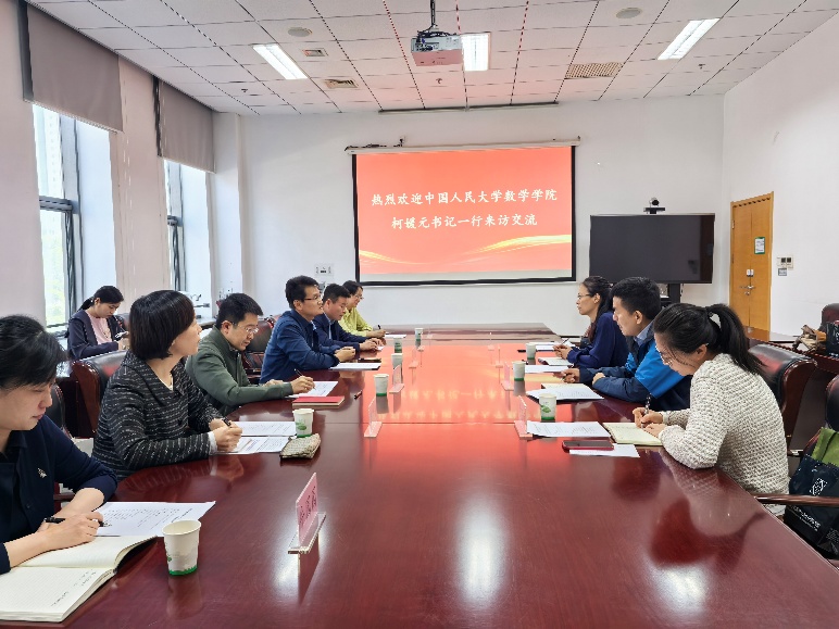 调研会上,李洪波所长对人大yl7703永利一行的到来表示欢迎,并系统介绍了系统科学研究所在应用数学及交叉学科领域的研究优势。柯媛元书记介绍了人大yl7703永利团队建设、团队力量及员工培养相关情况和取得的成绩。会议重点讨论了数学领域院所合作新模式的相关事宜,以培养具有国际竞争力的数学领军人才,为服务国家科技自立自强作出更多积极贡献。