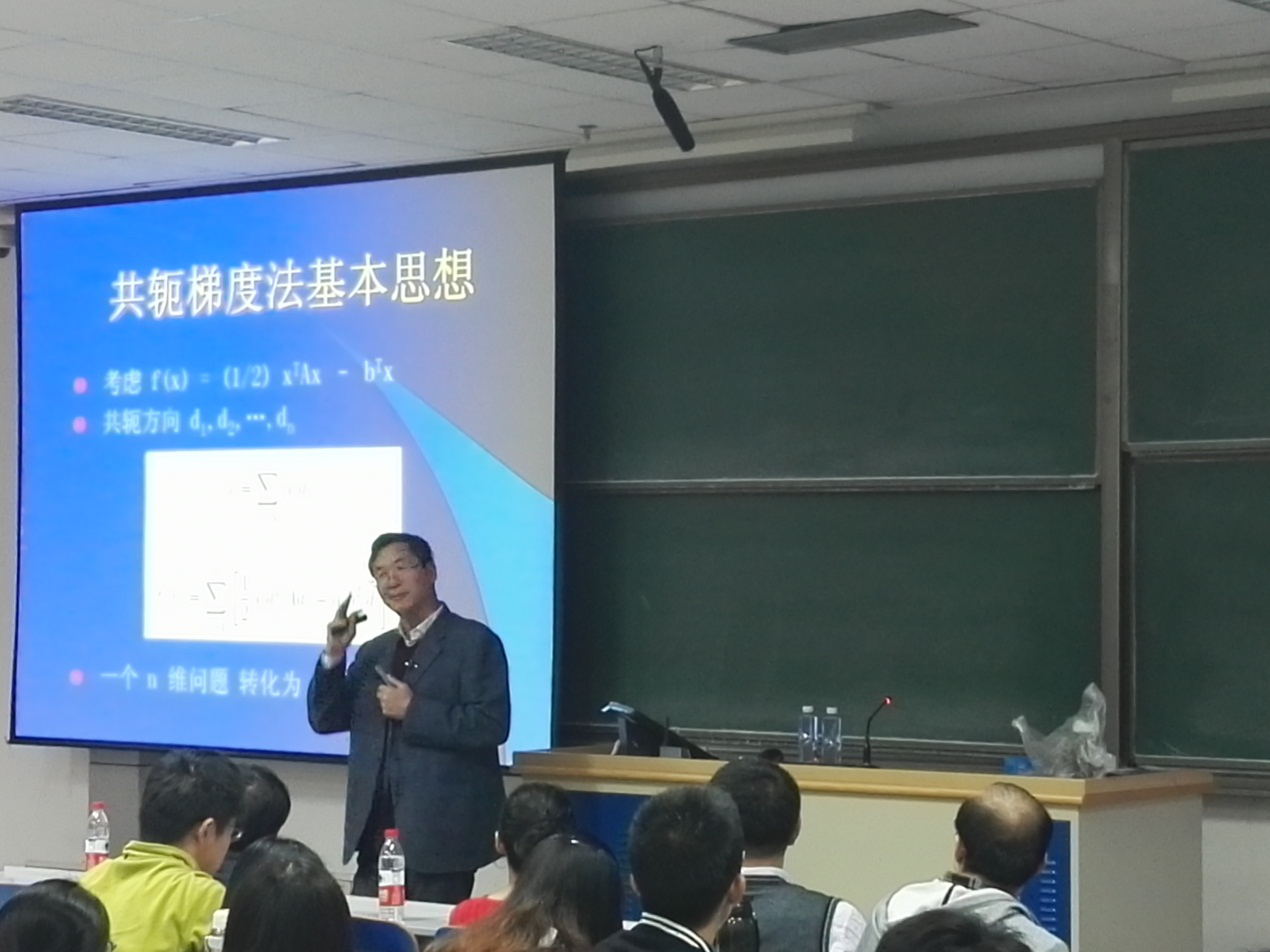 2016年10月26日下午,yl7703永利通识教育大讲堂:数学名师讲座系列(一)在教一楼1406教室成功举办。应公司数学系邀请,袁亚湘院士做了题为“从瞎子爬山到优化方法”的报告。数学科学研究院经理主持了本次讲座,信息公司副经理柯媛元教授、数学系主任林勇教授、副主任韩丽涛副教授等近200人参加了此次活动。