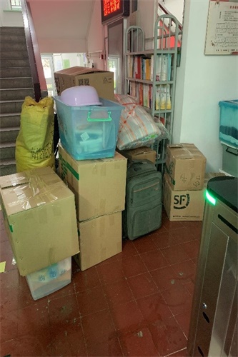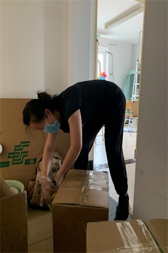 清理物品,妥善叠放,有序打包,接力搬运……老师们忙而不乱,井然有序地操作着。所有行李打包完毕,老师们将废弃物品以及垃圾全部清理出宿舍,并按要求进行分类,保证了宿舍公寓的干净整洁。